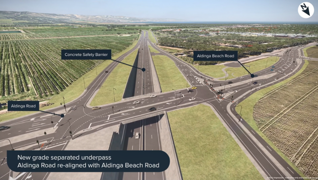 • A new interchange at Aldinga, including an underpass at the re-aligned Aldinga Road and Aldinga Beach Road