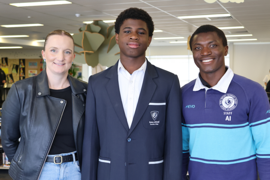 Roma Mitchell Secondary College’s Assistant Principal – Tailored Learning and Learner Support, Colette Bos, Abu and teacher Aladin Irabona