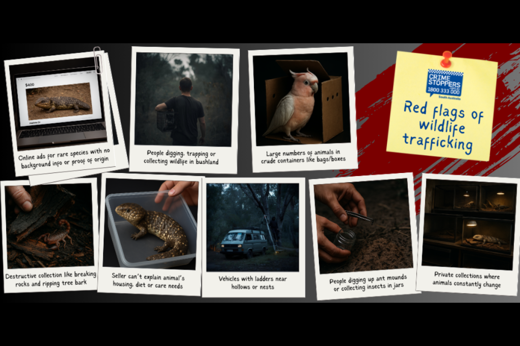 To tackle the issue, the State Government has launched the Call It Out campaign with Crime Stoppers SA, urging people to report suspicious behaviour linked to wildlife trafficking. The campaign outlines key warning signs for hikers, park visitors, regional communities and online shoppers.