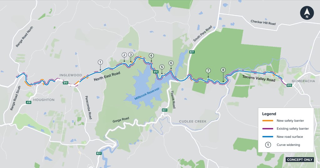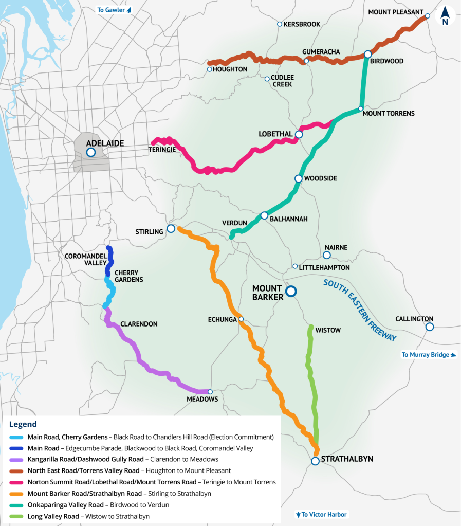 This stretch of road has tight curves, narrow shoulders and heavy local traffic. The upgrade is part of the Adelaide Hills Productivity and Road Safety Package.
