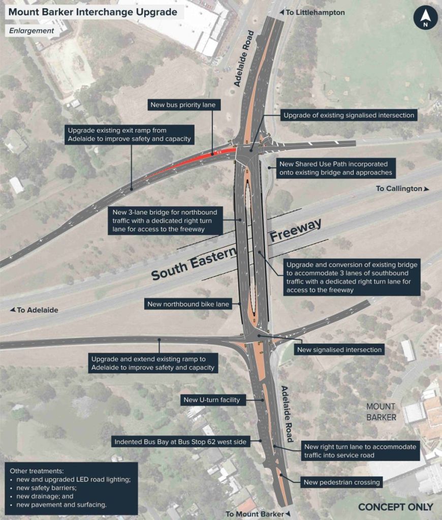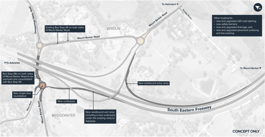 The Australian and South Australian governments have committed $150 million (80:20) to upgrade the Mount Barker and Verdun interchanges.