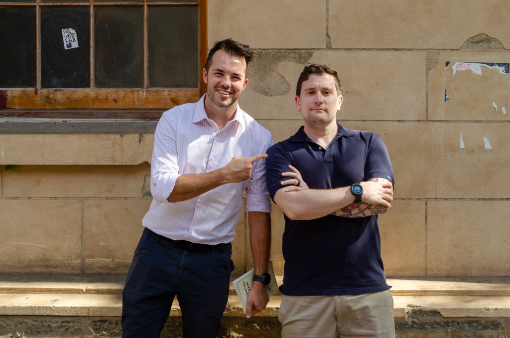 Dan (left) and his mate Tom from the AdeLOL podcast.