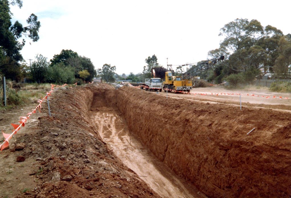Construction of the O-Bahn track.