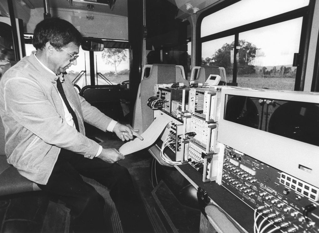 The old tech in an O-Bahn bus.