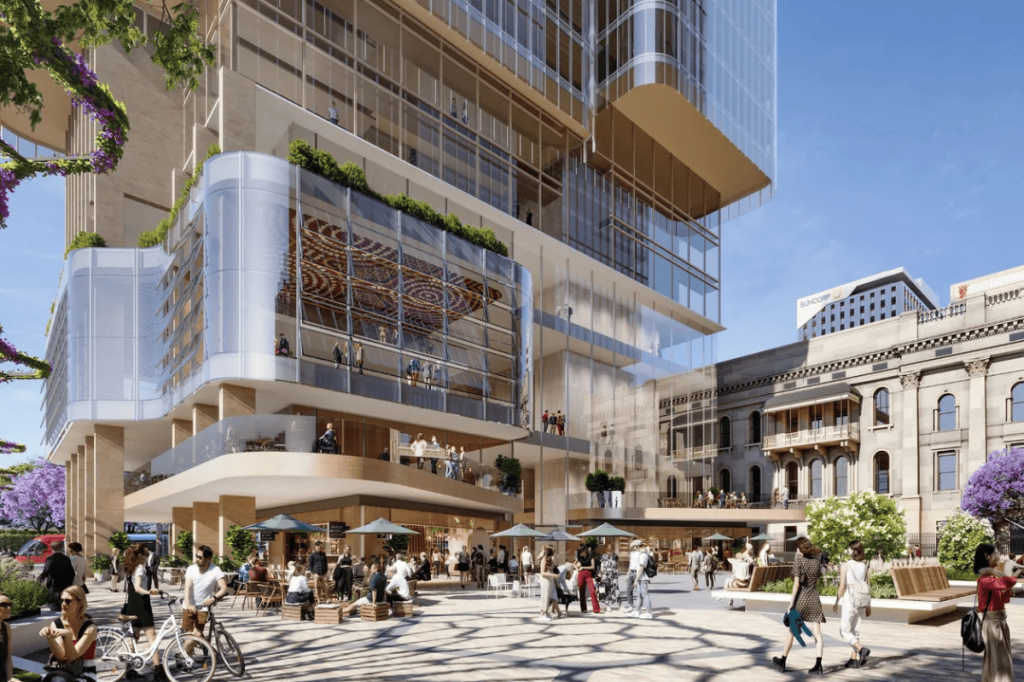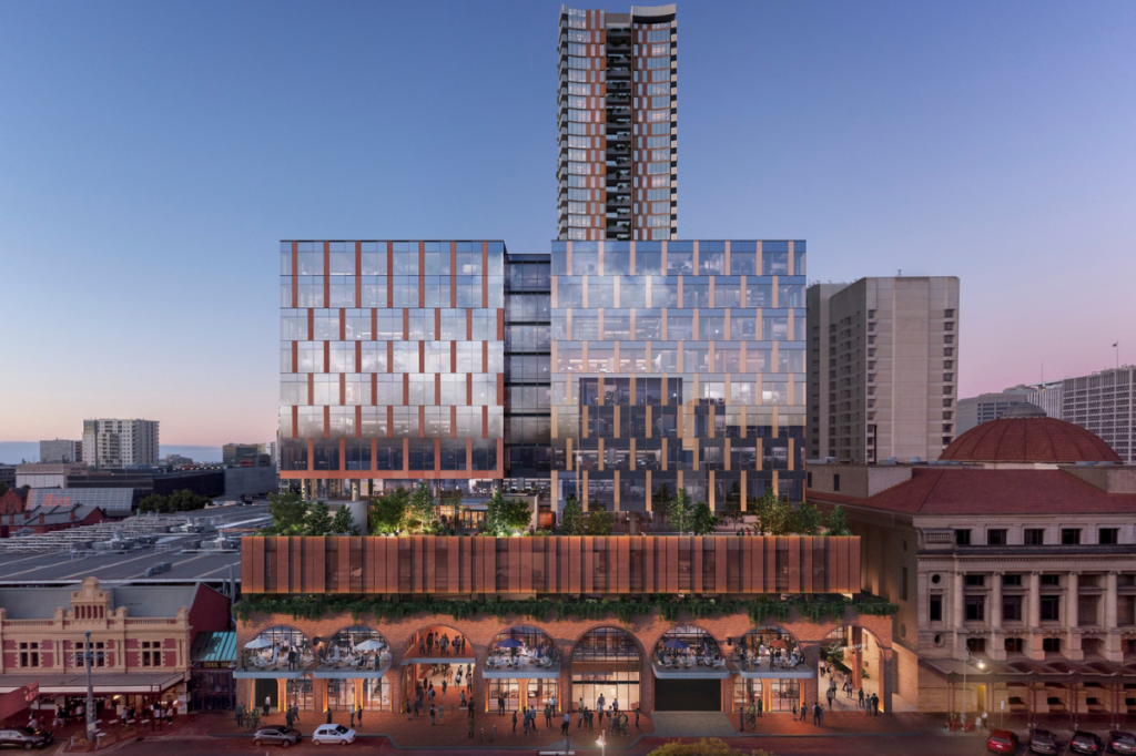 At its centre is a major mixed-use precinct combining retail, offices, a hotel, new apartments and public space, all built around an expanded version of the Central Market itself.