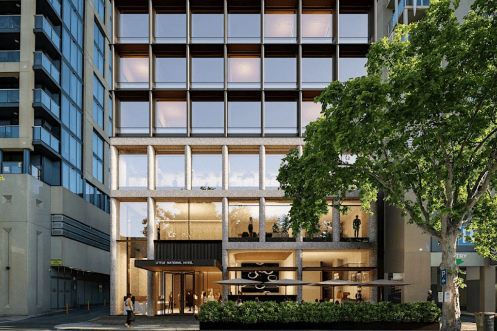 At 100 North Terrace, the $120 million Little National Hotel is currently under construction, with a planned opening before the end of the year. It will include around 230 rooms, plus penthouse suites, a 250sqm gym, guest-only lounge spaces and a two-storey rooftop bar with 360-degree views across the city, hills and coastline.