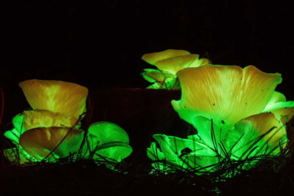 After late autumn rain, ghost mushrooms appear in pine forests and conservation areas near Mount Gambier – and glow an eerie green after dark.